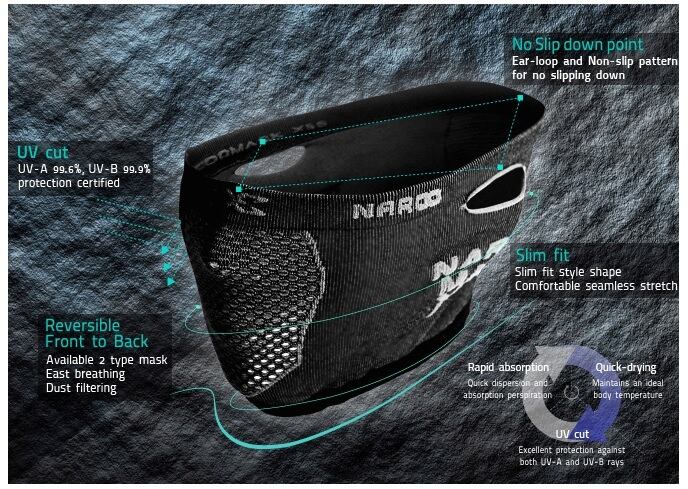Naroo Mask X5s スポーツ用フェイスマスク 日焼け防止 UVカット 花粉症対策 ナルーマスク ロードバイク ランニング マスク